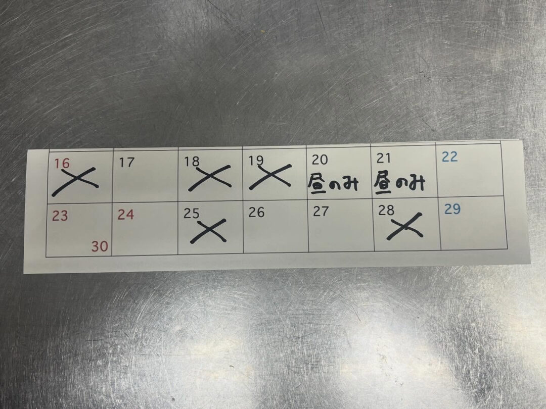 11月後半の営業予定日です。